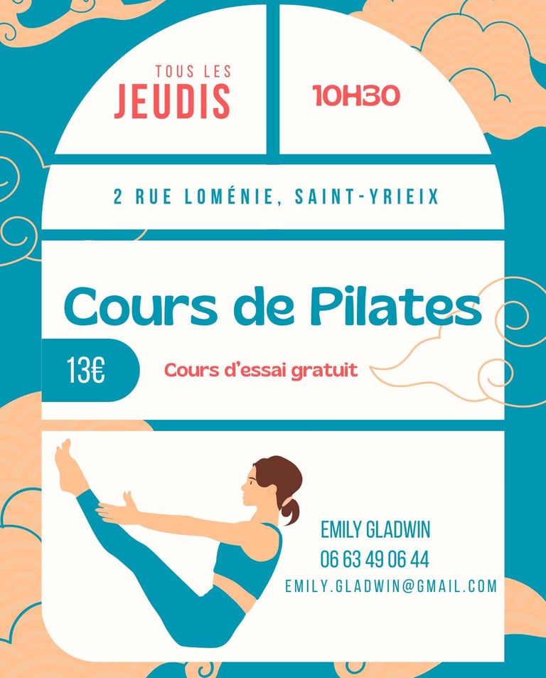 Cours collectif de Pilates tous les vendredis soirs de 18h à 19h.
